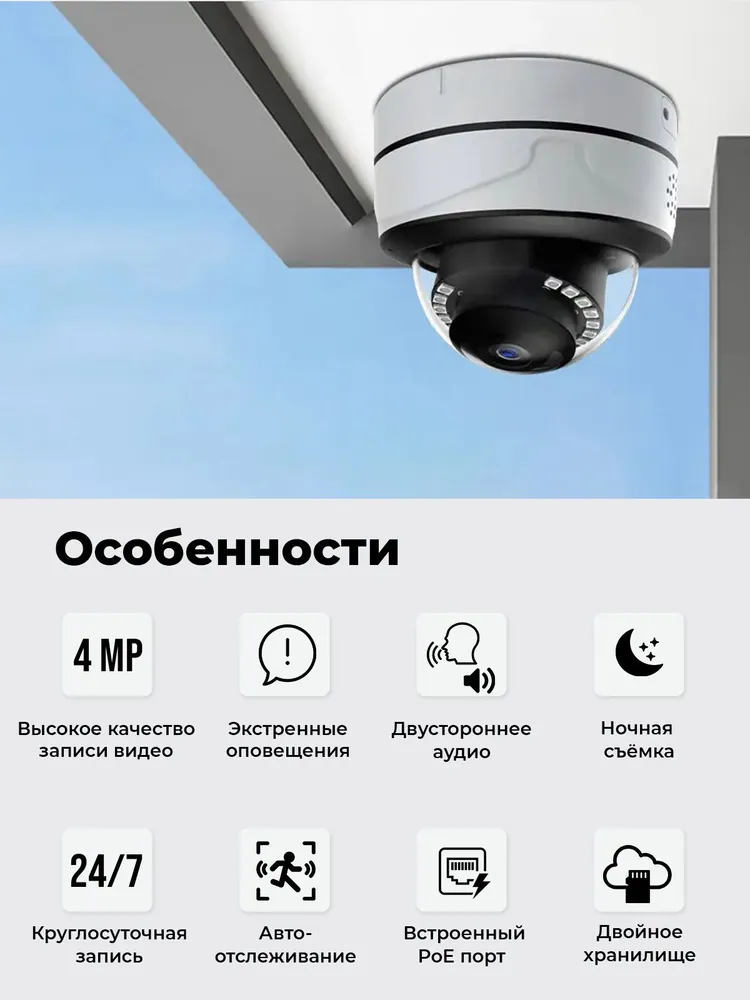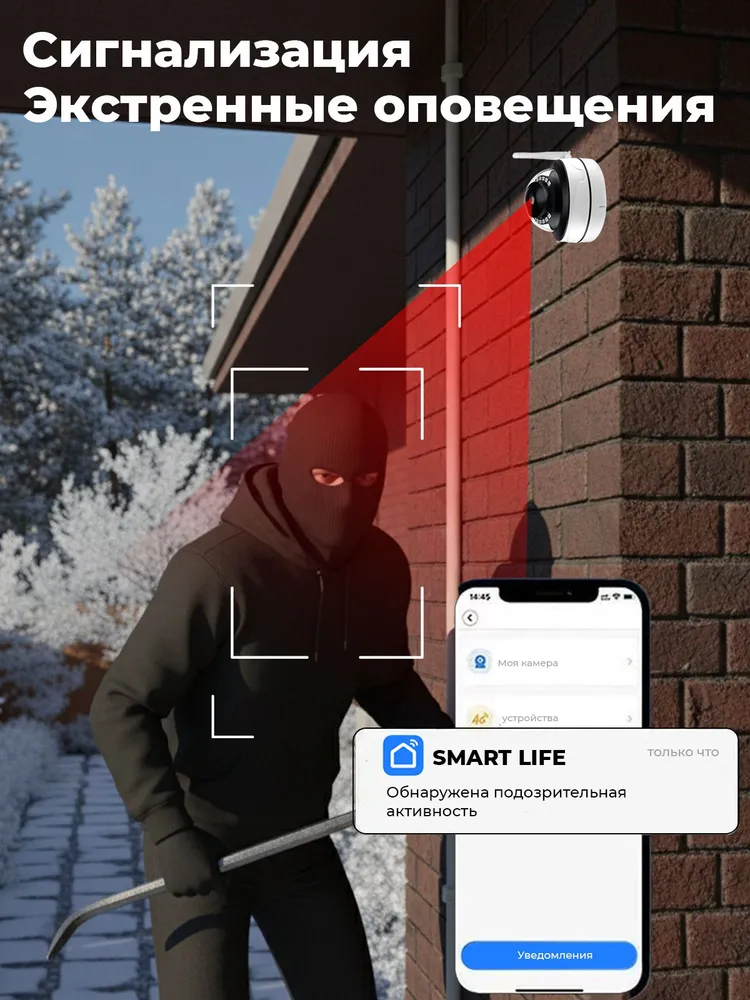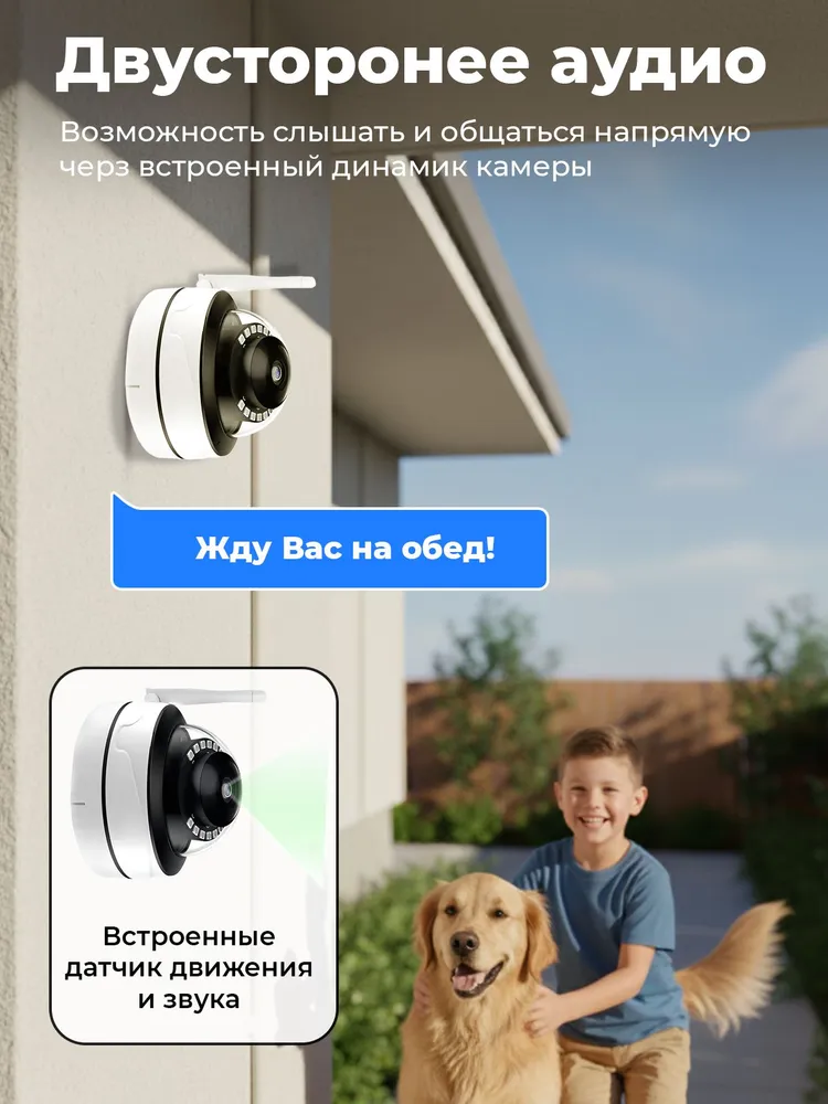 Оснащённая датчиком движения и звука, эта камера не просто записывает происходящее, но и активно принимает участие в охране помещения. Уловив подозрительную активность, устройство начнёт рассылку уведомлений на ваш телефон, что позволит вам вовремя среагировать. Вы можете активировать сигнализацию или пообщаться с нарушителем напрямую благодаря опции двустороннего аудио.