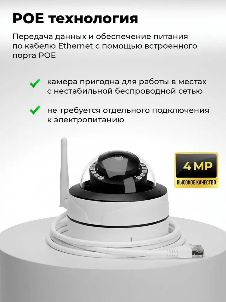IPC-490SPOE-Tuya – первое устройство из линейки Wi-Fi камер RITMIX, оснащённое PoE-портом, что расширяет круги его применения: камера пригодна для работы в местах с нестабильной беспроводной сетью, а также не требует отдельного подключения к электропитанию.