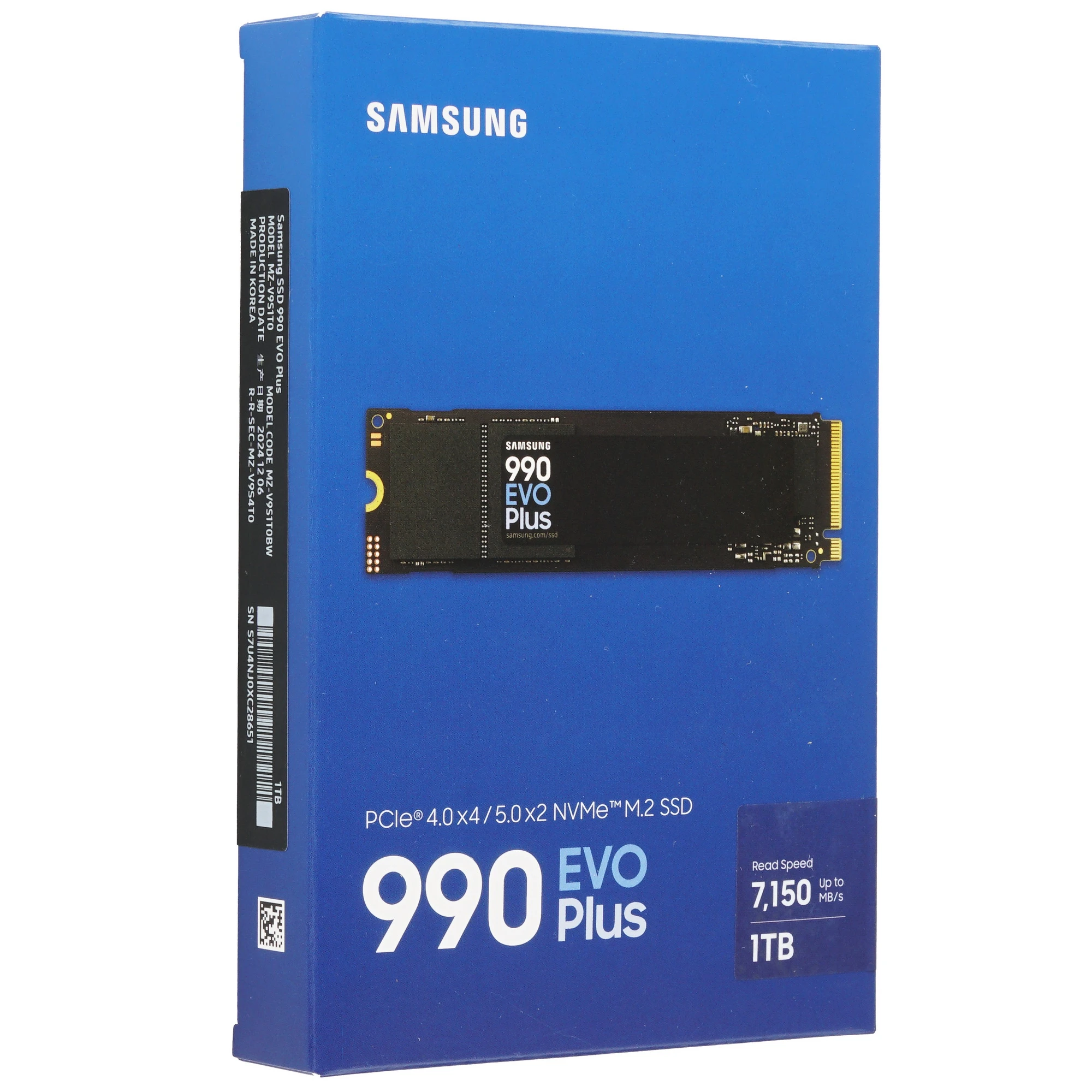 Samsung 990 EVO Plus - это высокопроизводительный NVMe M.2 SSD с интерфейсом PCIe 4.0 x4/5.0 x2 NVMe 2.0, обеспечивающий молниеносную скорость передачи данных. Его последовательная скорость чтения достигает 7150 МБ/с, а записи - до 6300 МБ/с, что позволяет быстро обрабатывать большие файлы и ресурсоемкие приложения.
