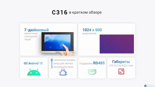 Многофункциональный домашний монитор Akuvox C316S с операционной системой Android 12 обеспечивает аудио и видеосвязь с домофонами по протоколу SIP 2.0. Он обеспечивает непревзойденные возможности сенсорного экрана в ненавязчивом, компактном дизайне с великолепным 7-дюймовым дисплеем.