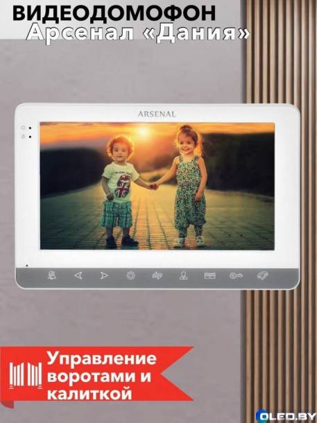 Арсенал Данию возможно охарактеризовать универсальным домофоном, так как она прекрасно подойдёт как для квартиры или дома, так и для кабинета. Модель оснащена 7" экраном, а также сенсорными клавишами. Существует вероятность подсоединения SD-карты ёмкостью до 128 Гб а также регулирования чувствительности детекции движения. Современный дизайн монитора идеально впишется в любой дизайн.