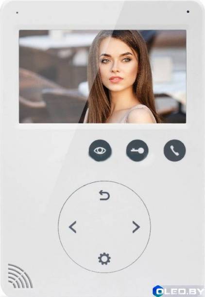 Монитор компактный выглядит стильно и не перегружает интерьер. Экран на 4.3 дюйма вполне достаточный картинка четкая, гостя видно хорошо. Блок питания встроенный все подключается напрямую к 220 вольтам. Громкая связь работает чисто, без лишних шумов.
