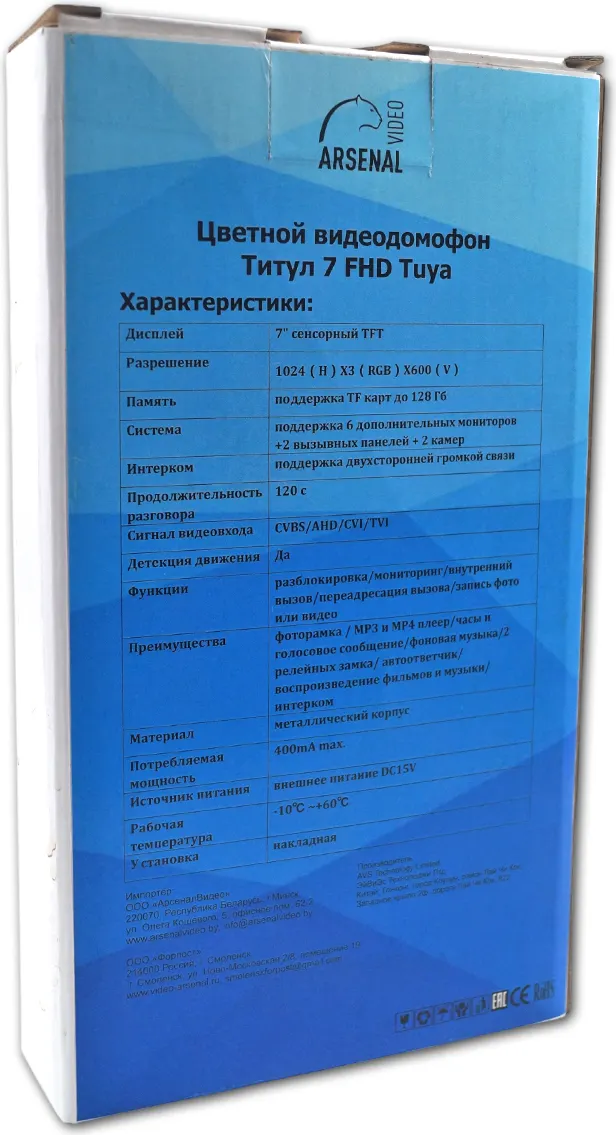 Технические характеристики Arsenal Титул 7 FHD TUYA