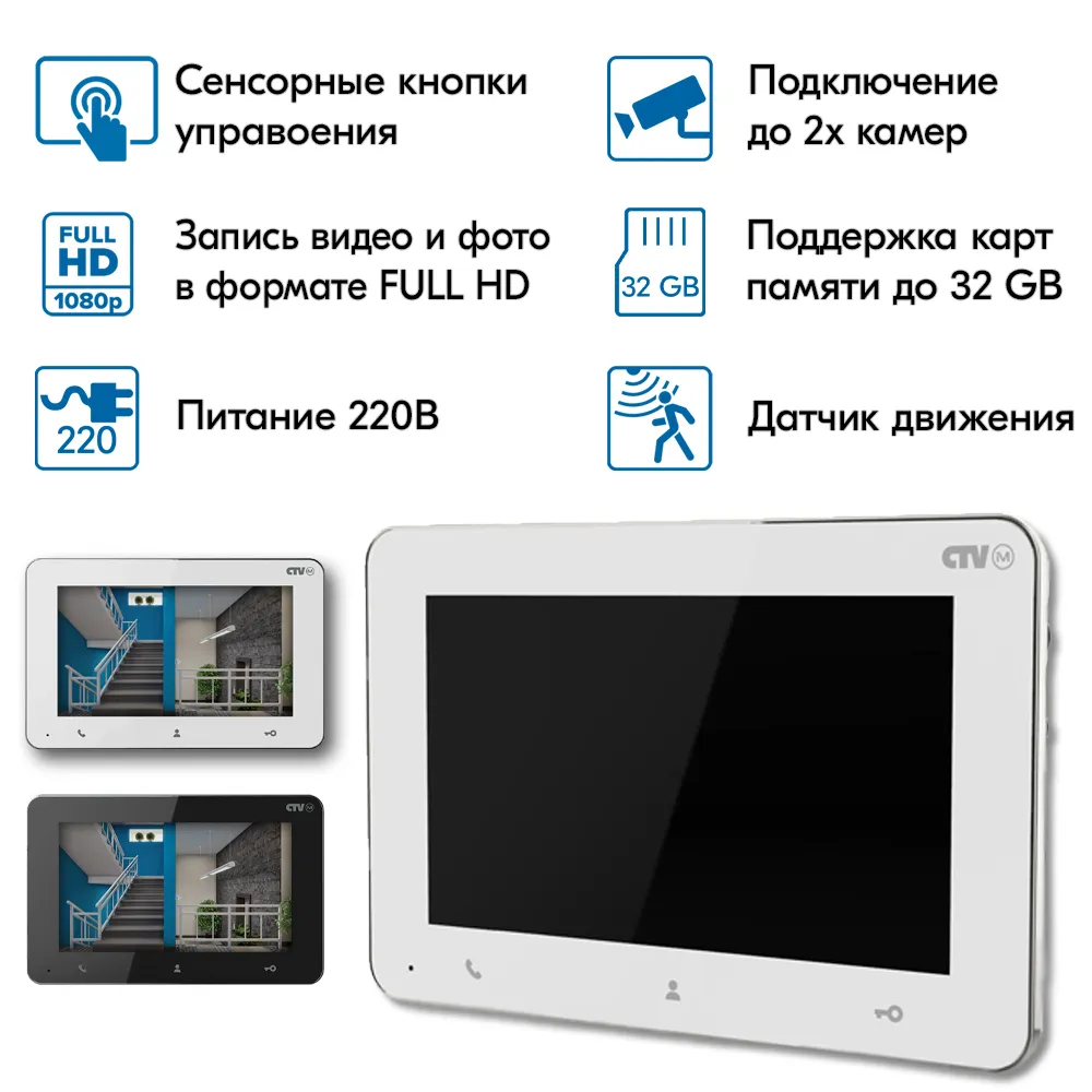 Характеристики на видеодомофон ctv im700 entry 7 (белый)