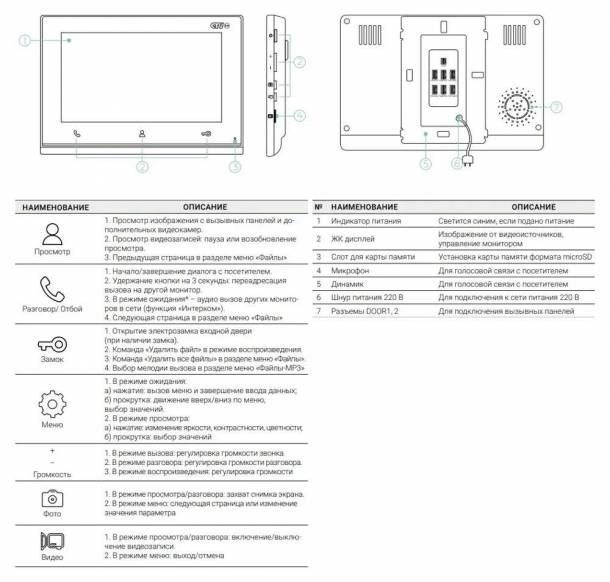 Монитор поддерживает до 12 мелодий вызова, голосовые подсказки для посетителя и выдачу сигнала управления электромеханическим замком.