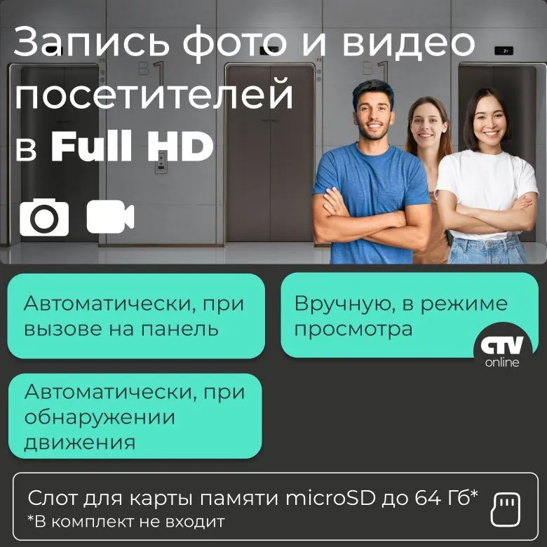 Поддержка карт SD microSD-card class 10 до 64 Гб, запись фото и видео