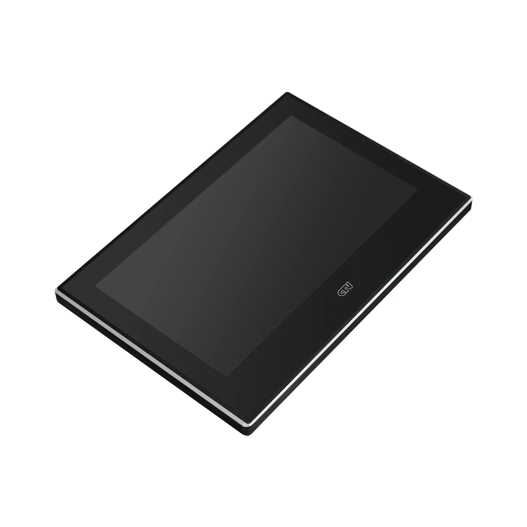 Корпус тонкий и эргономичный, выполнен из белого пластика с встроенным источником питания (AC 100-240 В или 12 В DC/1,5 А). Сенсорный экран и технология Touch Screen позволяют легко управлять настройками и функциями. Монитор оснащён системой AI для распознавания лиц и обнаружения человека, что повышает уровень безопасности и автоматизации.