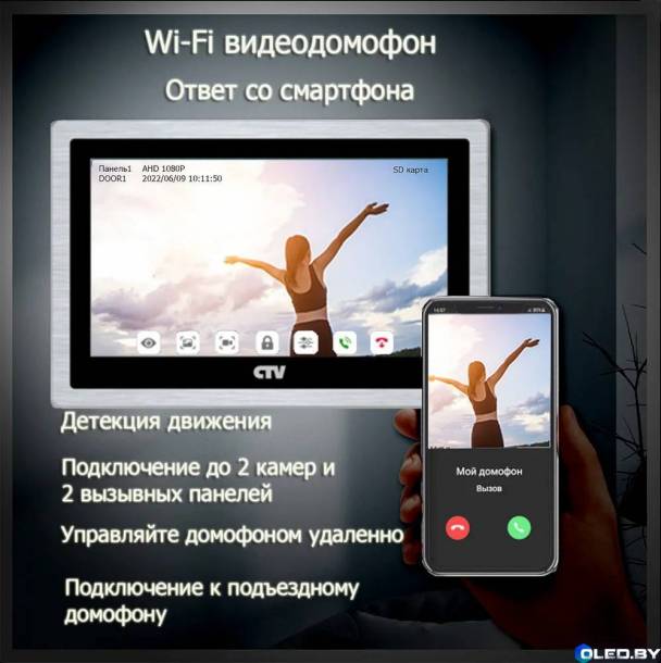 Характеристики на видеодомофон ctv m5102 ahd c wifi (черный)