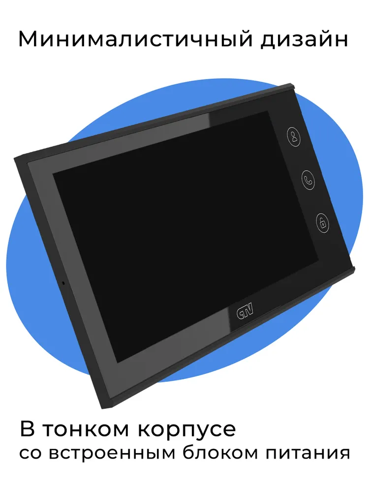 CTV-M5700 — это 7-дюймовый видеодомофон с IPS-экраном (1024x600), встроенным Wi-Fi и поддержкой высокого разрешения (AHD/TVI/CVI/CVBS 1080P).