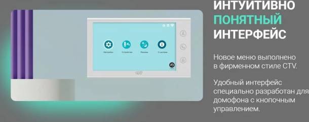 Монитор видеодомофона с 7" IPS дисплеем, системой управления Easy buttons, поддержкой формата AHD и записью в Full HD. С удаленным доступом со смартфона через приложение CTV Home.