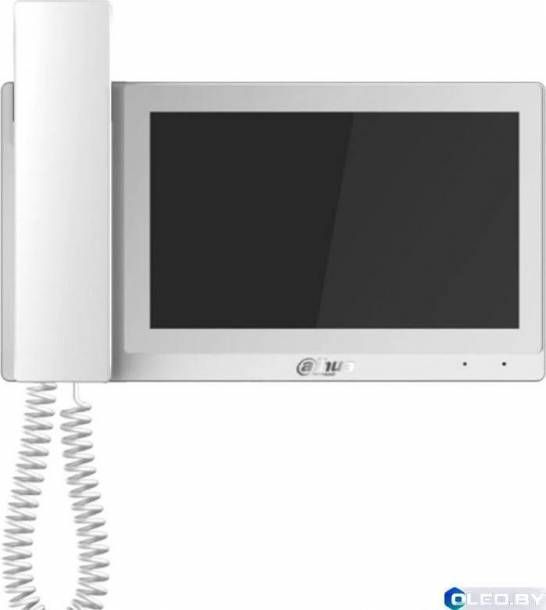 Монитор видеодомофона Dahua DHI-VTH5421EW-H — это IP-устройство с 7-дюймовым сенсорным экраном и трубкой для конфиденциального общения, поддерживающее подключение IP-камер, интеграцию с тревожными датчиками и питание по PoE.