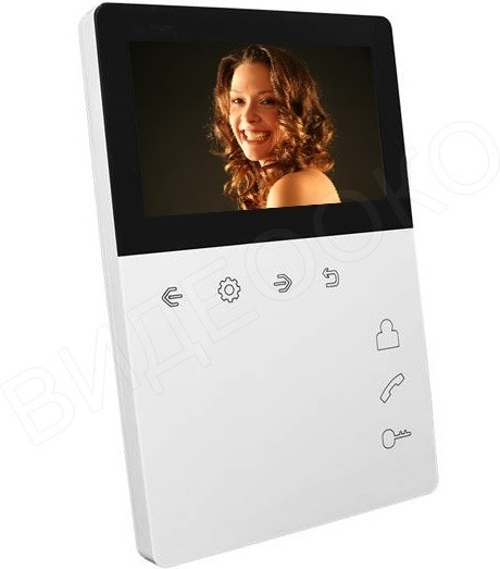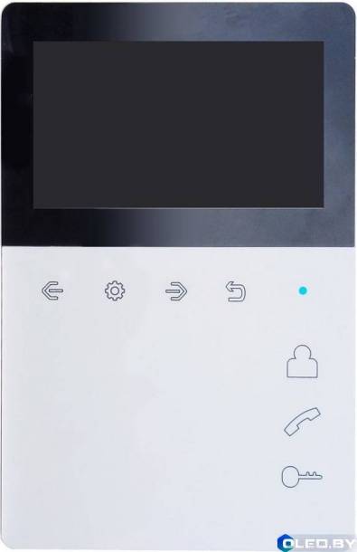 Монитор домофона с экраном 4,3 дюйма со встроенным блоком питания. Всё управление осуществляется сенсорными кнопками.