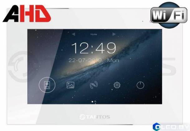 Монитор цветного видеодомофона Tantos Mia диагональю 7 дюймов с сенсорными кнопками с поддержкой форматов AHD/TVI/CVI/CVBS (PAL). Тонкий корпус 18мм со встроенным блоком питания.