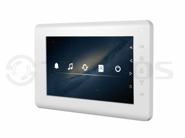 Цветной сенсорны TFT дисплей с разрешением 800х480 обеспечит качественное и понятное изображение. Монитор поддерживает форматы записанных файлов вплоть до 1080 пикселей . Устройство обладает всеми функциями, необходимыми для качественного домофона.