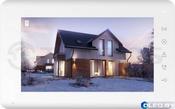 Цветной сенсорны TFT дисплей с разрешением 800х480 обеспечит качественное и понятное изображение. Монитор поддерживает форматы записанных файлов вплоть до 1080 пикселей . Устройство обладает всеми функциями, необходимыми для качественного домофона.