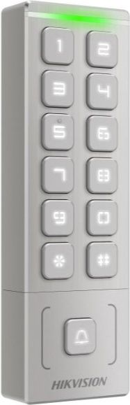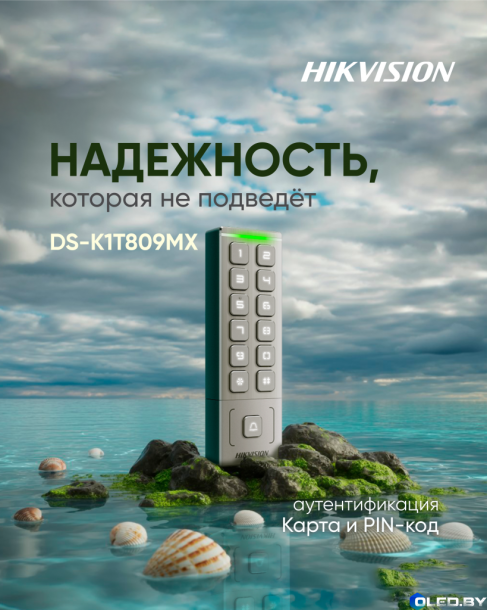 Hikvision DS-K1T809MX — это защищенный автономный терминал контроля доступа с поддержкой карт Mifare (13.56 МГц) и паролей, обладающий защитой IP65 и работающий при температурах от -40 до +65 °C.