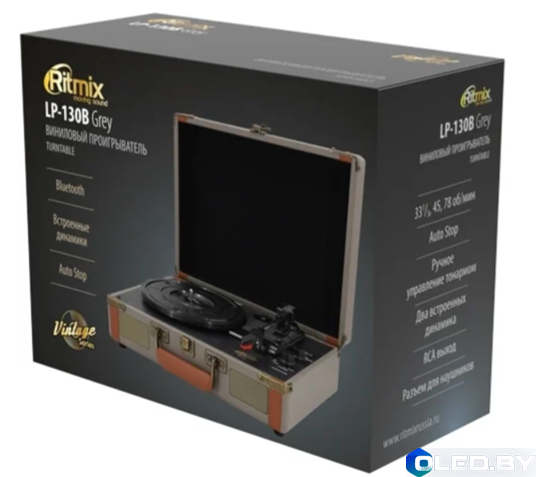 Виниловый проигрыватель Ritmix LP-130B — это бюджетная модель начального уровня в форм-факторе винтажного чемоданчика, предназначенная для тех, кто хочет познакомиться с винилом без больших затрат.