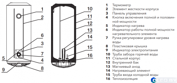 Устройство прочно, надежно и безопасно. Чтобы гарантировать безопасность, имеется защита от перегрева, а также индикаторы включения и выключения. Чтобы защитить нагревательный элемент, имеется покрытие из магниевого анода, это значит, что металлический стержень покрыт специальным химическим соединением, которое надежно защищает от возникновения накипи. Внутренняя часть бака благодаря эмалевому покрытию защищена от коррозии, что также увеличивает длительность эксплуатации. Данная модель — отличный выбор, если вы хотите совместить в приборе красивый внешний вид, отличные технические характеристики и безопасность!